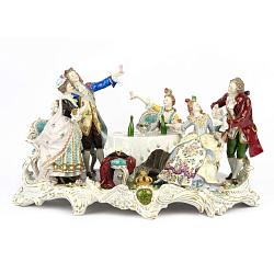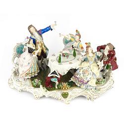 Прекрасная старинная композиция с изображением галантной сцены. Исполнена  в середине 19-го века на знаменитой мейссенской мануфактуре.