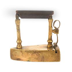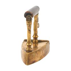 Небольшой, старинный, очень антуражный утюжок , предназначеный для глажки элементов одежды, таких как манжеты, воротнички, кружева и т д. Изготовлен в Европе в конце 18-го века. Внутрь помещается чугунная, ручной ковки болванка, треугольной формы, ее нагревали до «красна» и помещали вовнутрь утюжка, что позволяла гладить ткани какое то время.