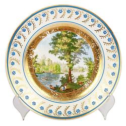 Редкие парные декоративные тарелки с видами Петропавловской крепости и Павловского дворца. Изготовлены в 1815-1825-х годах на Императорском фарфоровом заводе в период царствования Александра Первого. Антиквариат. Редкость. Хорошая сохранность. Небольшие потертости. Диаметр 24 см. Фарфор, деколь с подрисовкой, золочение.