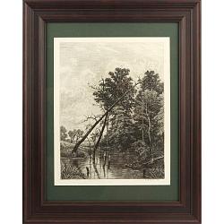 Красивый, светлый, один из больших офортов данного альбома с изображением русского леса с буреломом.