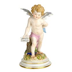 Чудесная, старинная скульптура изображающая очаровательного амура с брачным контрактом в руке. Автор модели мейссенский скульптор Йоханн Поллак, создал ее в 1880-м году.