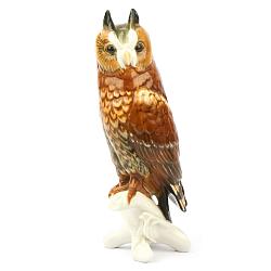 Замечательная скульптура "Филин" изготовлена известной фарфоровой фабрикой Тюрингии Карла Энса. Коллекционерам старинных фарфоровых статуэток хорошо известна фирма Карла Энса.  Ее основателем был Фридрих Карл Энс, одна из важнейших личностей в росписи немецкого фарфора. Он создал невероятное множество разнообразных форм и росписей фигурок птиц, животных, людей, жанровых, религиозных  и охотничьих сцен. Очень натуралистичные, живые, тонкой изящной работы, его изделия всегда можно отличить среди других. После Фридриха Карла его дети в точности продолжили традицию высочайшего качества и утонченной продукции. Это всегда были произведения с тонкой прорисовкой, прозрачным либо полупрозрачным, но неизменно ровным красочным слоем, изящной формой, мельчайшей детализацией. Каждая работа – это законченный шедевр. Каждый фирменный предмет, от крохотной статуэтки до подарочного блюда, идеален.