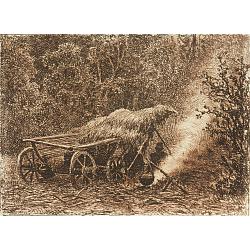 Красивый, светлый, один из ранних офортов в этом альбоме. Посреди леса, на песчаной дороге в солнечный денек стоит паренек с телегой наполненной хворостом.   Очень реалистично и жизненно.