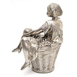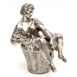 Занятный, старинный коллекционный предмет - девушка сидящая верхом на шкатулочке в виде корзины с секретом. Антиквариат.