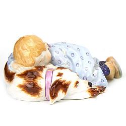 Замечательная фигурка «Мальчик спящий на собаке». из серии «Дети Хеншеля» включавшей в себя 14 статуэток. Изготовлена на знаменитой мануфактуре Мейссен в первой половине 20-го века, по модели скульптора Хеншеля 1900-х годов. Хорошая, милая и добрая. Данный вариант росписи максимальный. Встречаются варианты с гораздо более простой росписью. Хорошая сохранность.