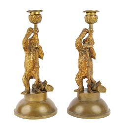Приятный образец кабинетной пластики подсвечники « медведи». Антиквариат.