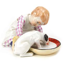 Замечательная фигурка «Девочка с собакой» из серии «Дети Хеншеля» включавшей в себя 14 статуэток. Изготовлена на знаменитой мануфактуре Мейссен в середине 20-го века, по модели скульптора Хеншеля 1900-х годов. Хорошая, милая и добрая. Данный вариант росписи максимальный. Встречаются варианты с гораздо более простой росписью. Хорошая сохранность.