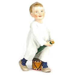 Замечательная фигурка «Мальчик с барабаном» из серии «Дети Хеншеля» включавшей в себя 14 статуэток. Изготовлена на знаменитой мануфактуре Мейссен в середине 20-го века, по модели скульптора Хеншеля 1900-х годов. Хорошая, милая и добрая. Данный вариант росписи максимальный. Встречаются варианты с гораздо более простой росписью. Хорошая сохранность.
