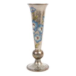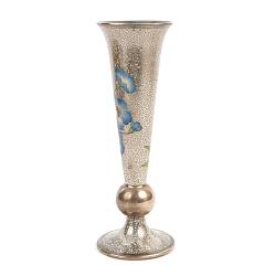 Ваза изготовлена с использованием сложной и очень трудоёмкой техники. Суть метода состоит в том, что серебро объединяется со стеклом или фарфором в одно целое. В работе применялось чистейшее серебро 999-1000 пробы, которое обладает необходимой пластичностью. Главная особенность состоит в том, что это не гальваническое покрытие на фарфоре, серебрение или серебряная фольга, наклеенная на фарфор. Это инкрустация - когда в фарфор вживляется серебро, вырезанное из предварительно раскатанной тонкой пластины этого металла.