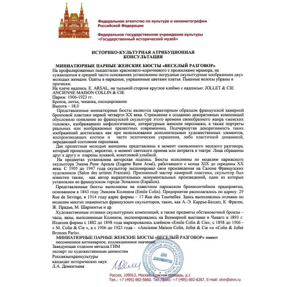 Миниатюрные парные бюсты из бронзы, виртуозно исполненные по модели французского скульптора Эжена Рене Арсала на известном парижском бронзолитейном предприятии Эмиля Колина – превосходный образец французской камерной пластики.
