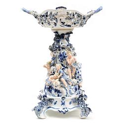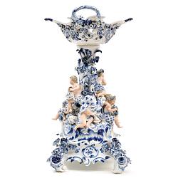 Прекрасная старинная, большая ваза «Времена года». Изготовлена в 1860-70-е года на знаменитой немецкой мануфактуре MEISSEN. Колыбели европейского фарфора. Ваза состоит из трех частей: чаши с прорезным орнаментом, тулова с фигурками путо, и основания. Ваза богато украшена лепным декором. Антиквариат. Хорошая сохранность.