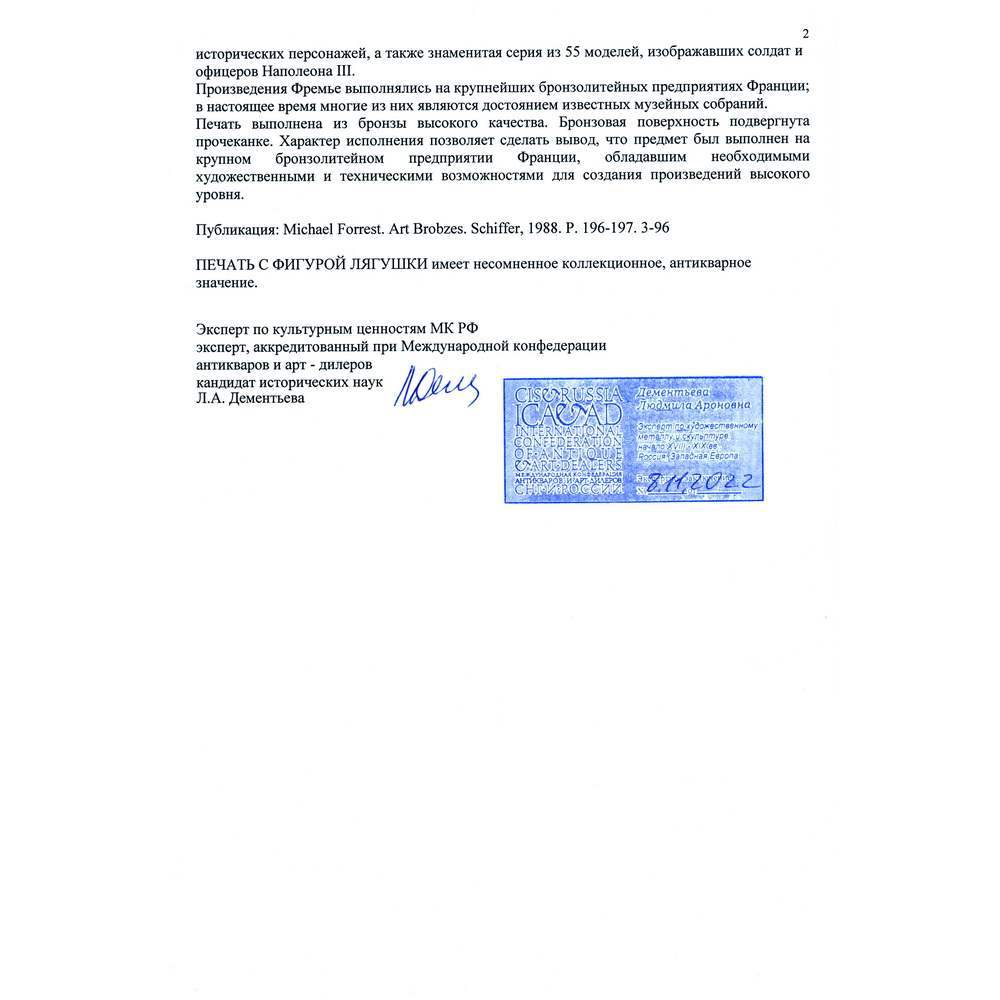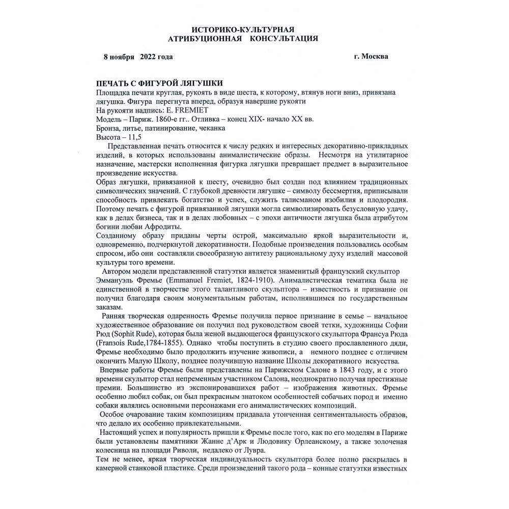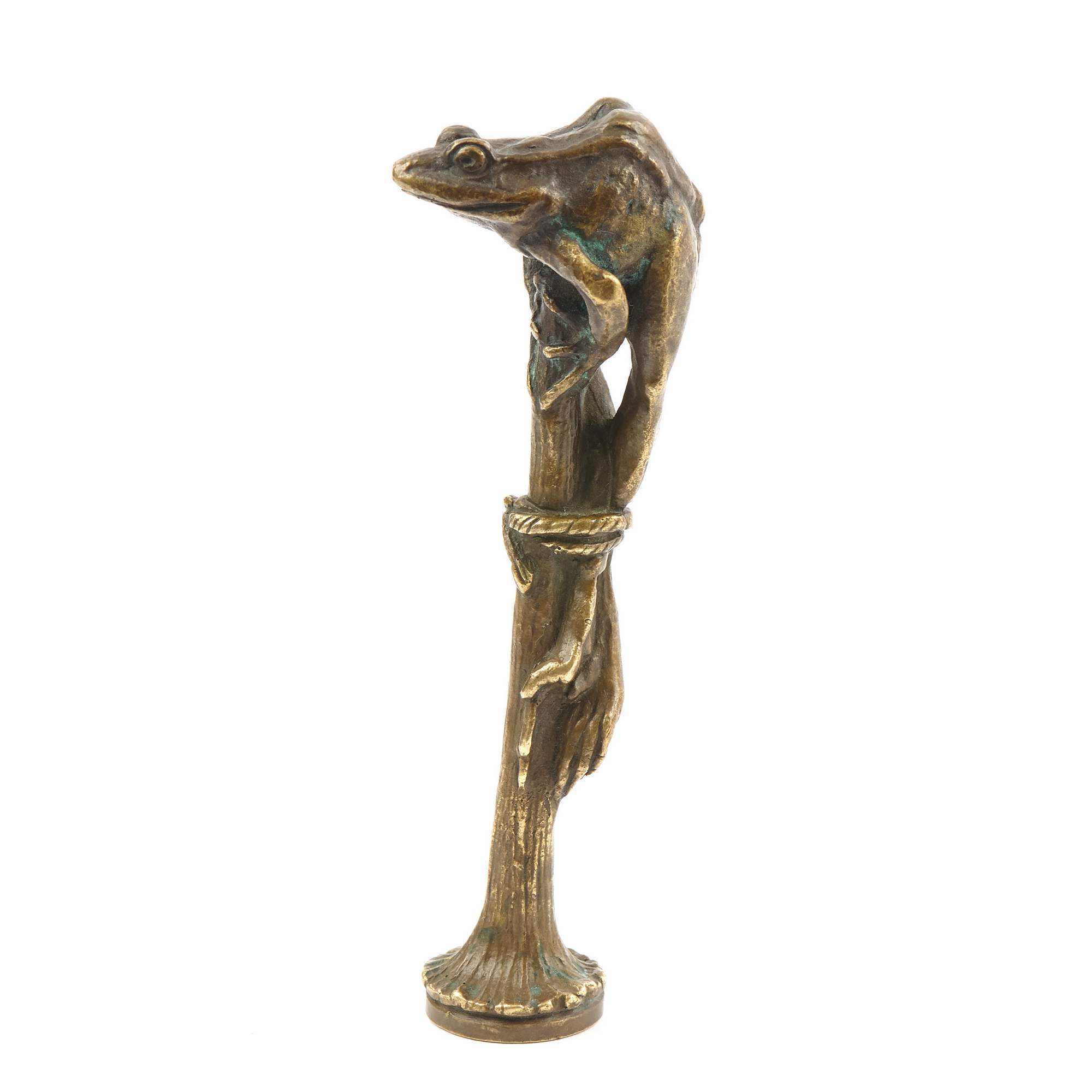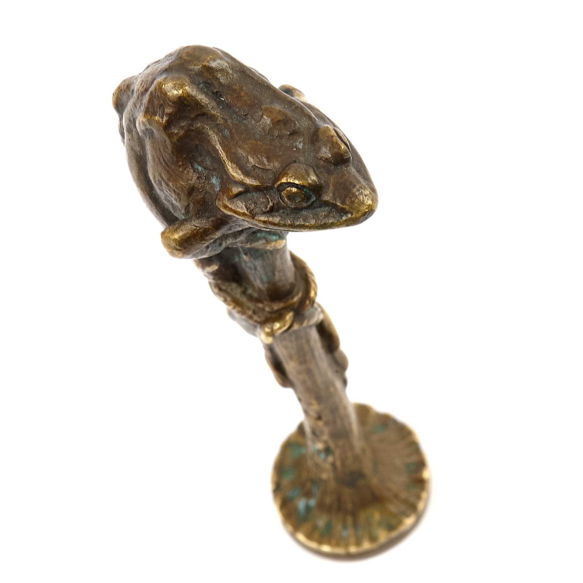 Редкий, старинный, коллекционный предмет - личная печать в виде лягушки на столбике. Изготовлена по модели очень известного французского скульптора анималиста Эммануэля Фремье ( 1824-1910 г г ). Это один из самых титулованных французских скульпторов 19-го века. Его работы находятся во многих коллекциях музейных собраниях. А так же украшают улицы и площади городов. Например памятник Жанне Д Арк в Париже. Но особенно хорошо ему удавались образы животного мира, чье настроение он тонко улавливал и прекрасно передавал воплощая их в камерной бронзовой пластике. Антиквариат.