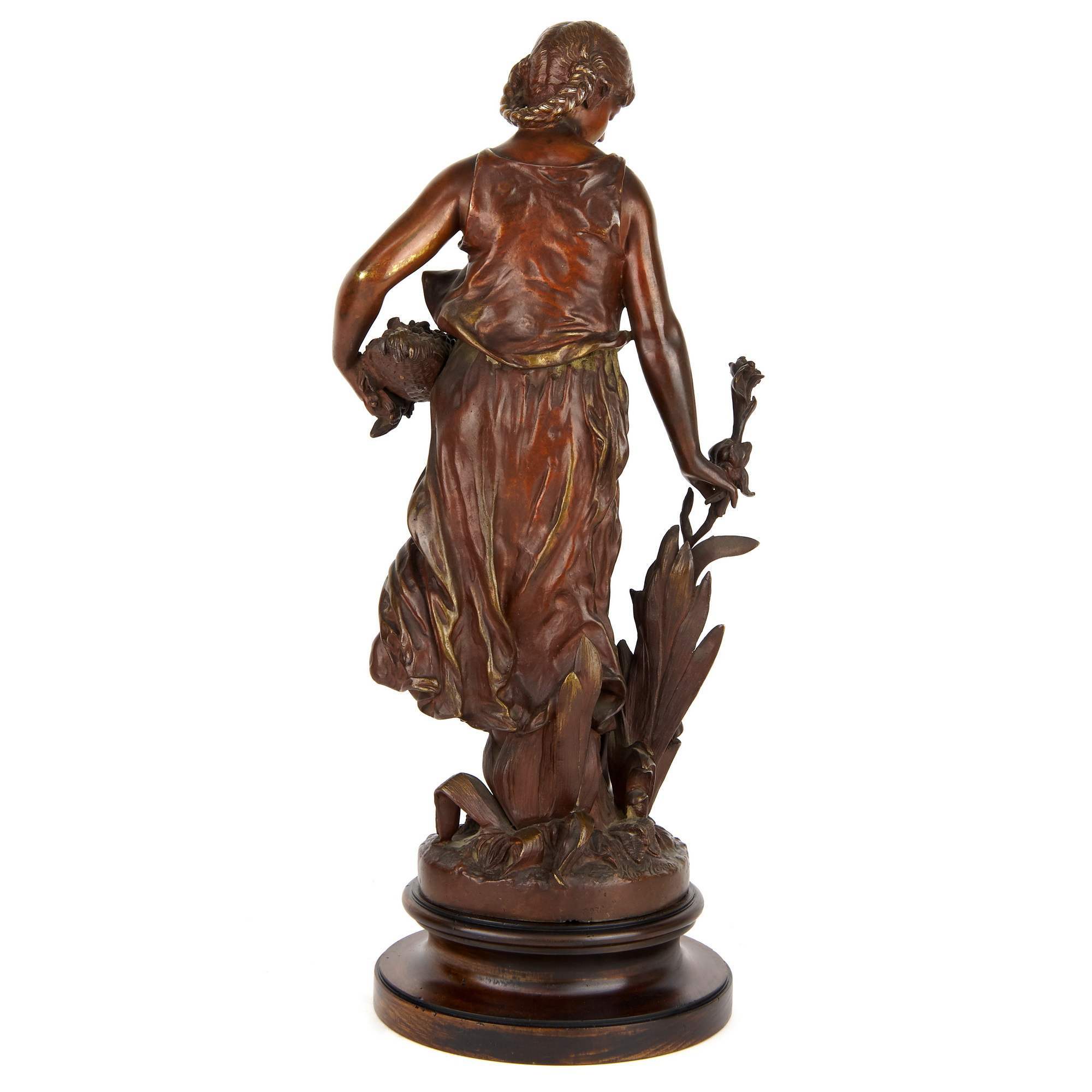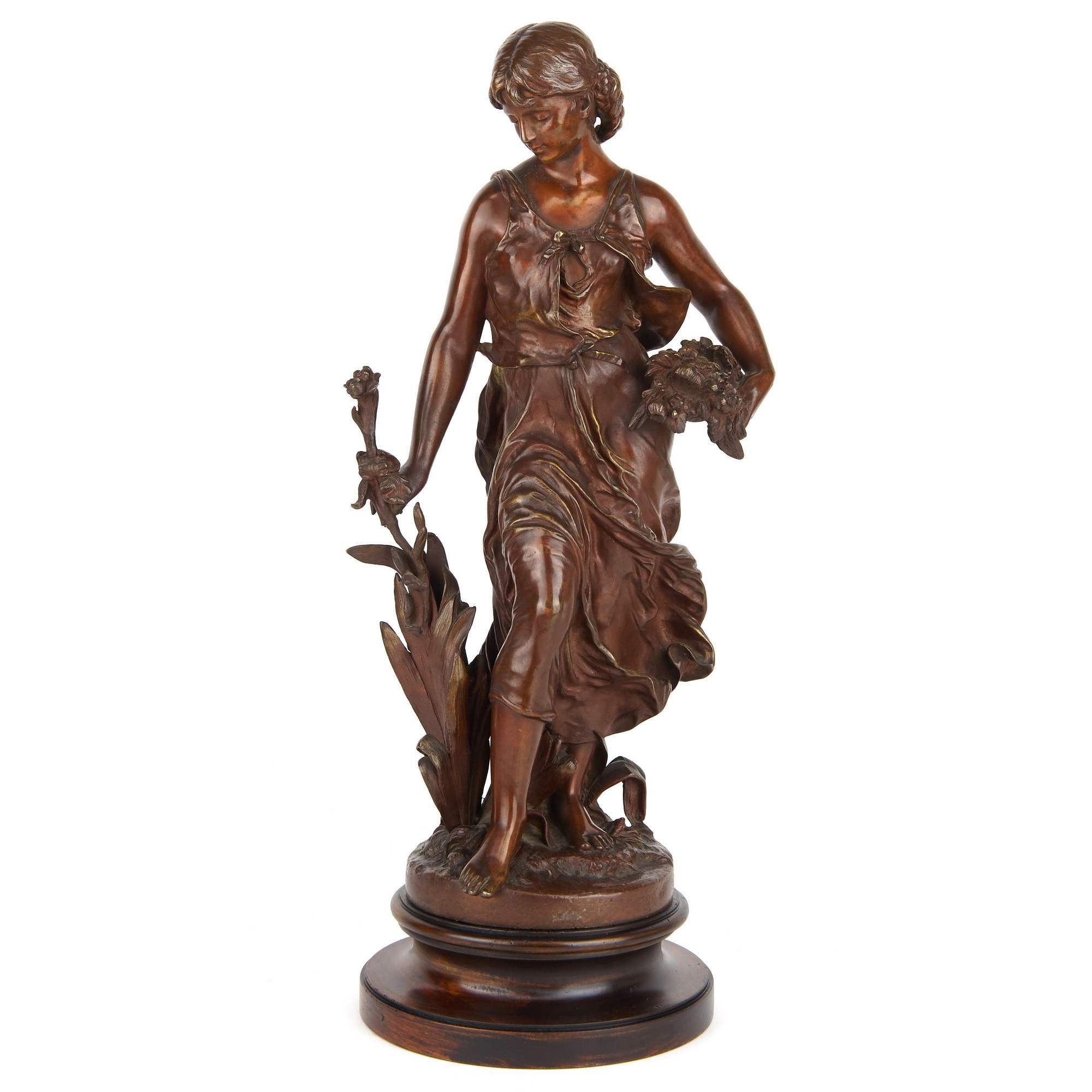 Перед нами замечательная старинная композиция «Аллегория Весны», воплощенная в пленительном женском прекрасном образе по модели известного французского скульптора Ипполита Моро. Произведения автора украшают многие коллекции и музейные собрания. Антиквариат. Хорошая сохранность.