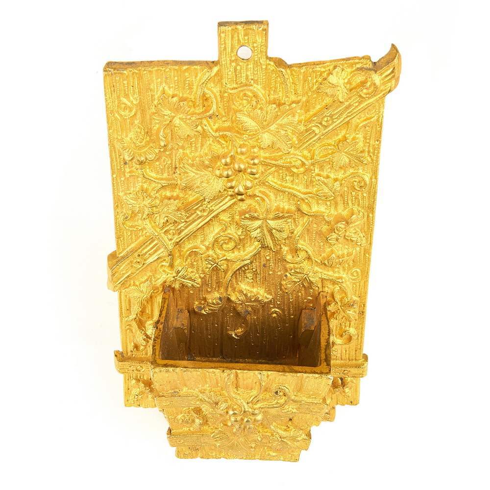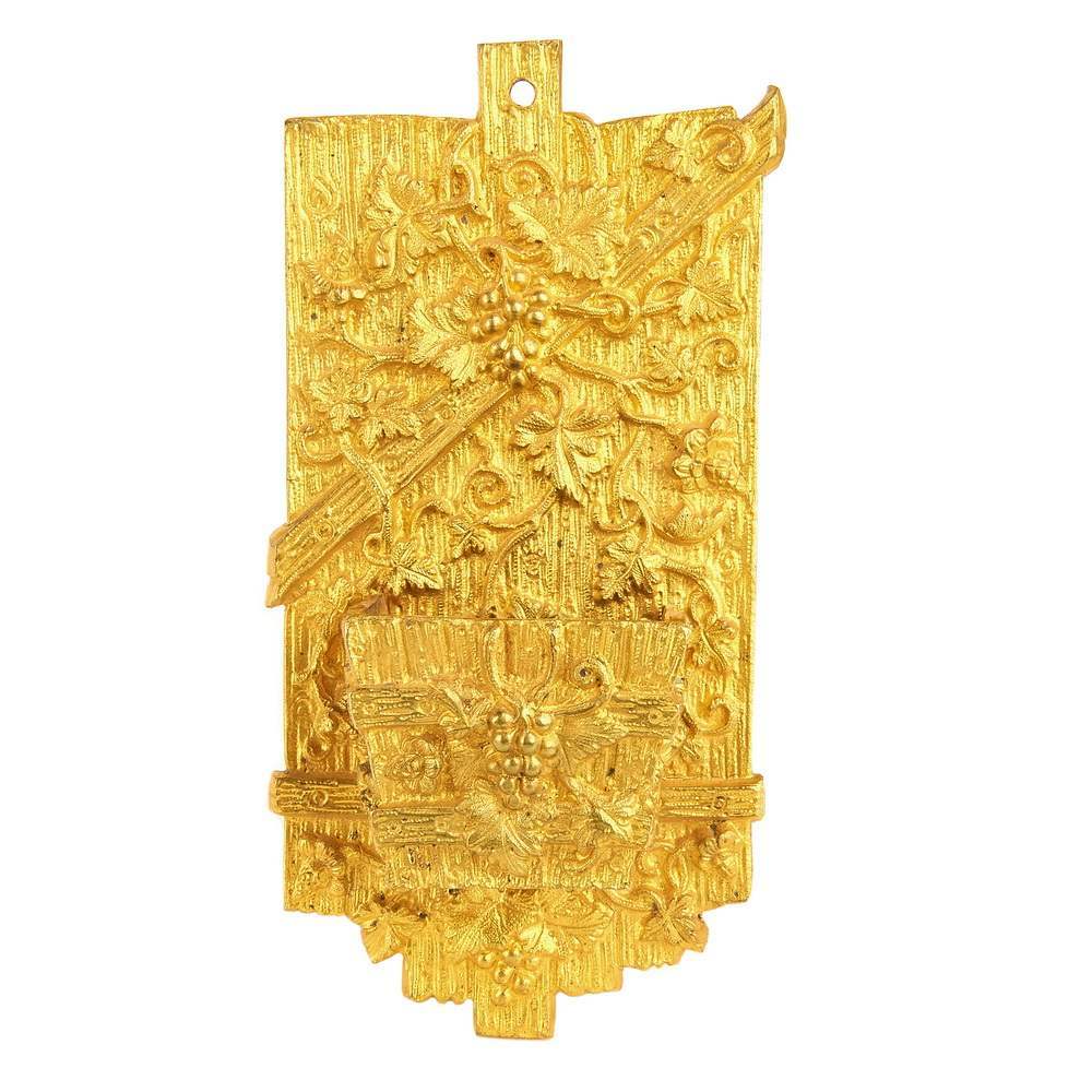 Настенное украшение с ящичком для спичек. Предмет стилизован под старые доски обвитыми виноградной лозой. Антиквариат. Отличная сохранность и золочение. Западная Европа. XIX век. Бронза. Размер - 20,0 х 10,0 х 5,0 см.