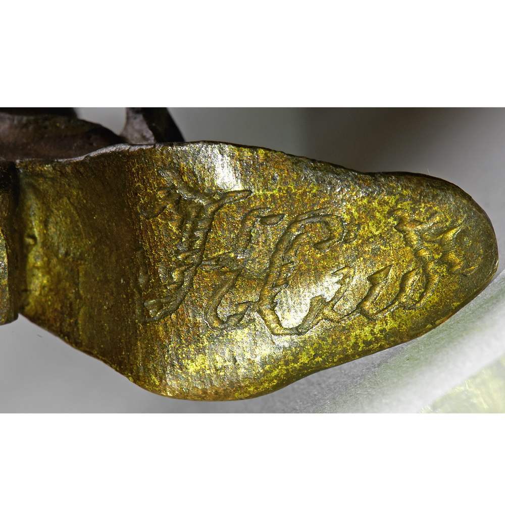 Западная Европа. Начало XX века. Бронза, литье, чеканка, патинирование. Размеры - 16,8х21,5х13,2 см. Экспертное заключение МК РФ к.и.н. Л.А.Дементьева.