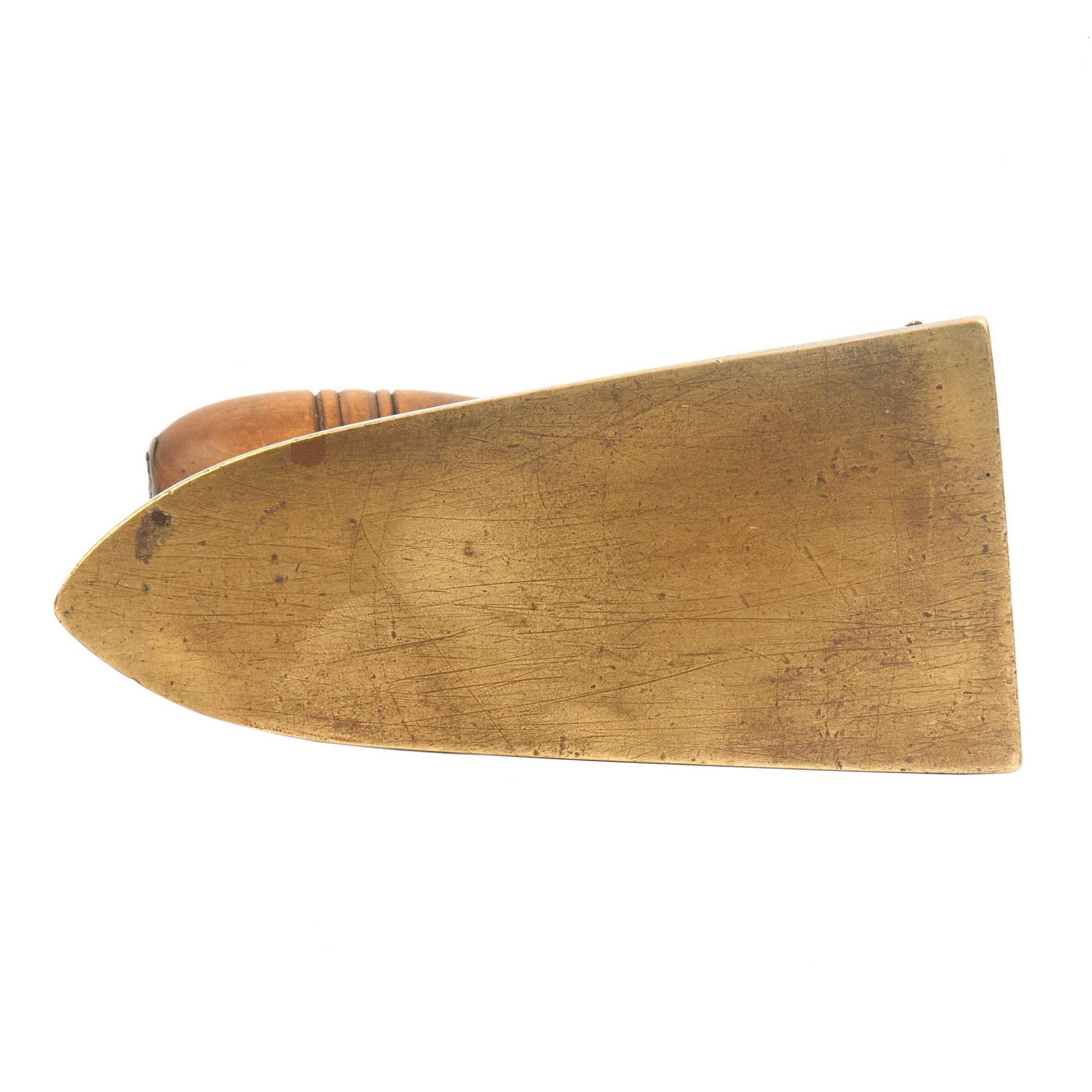 Старинный, очень антуражный утюжок , предназначеный для глажки элементов одежды, таких как манжеты, воротнички, кружева и т д. Изготовлен в Европе в середине 19-го века. Внутрь помещается чугунная, ручной ковки болванка, треугольной формы, ее нагревали до «красна» и помещали вовнутрь утюжка, что позволяла гладить ткани какое то время более - менее горячим утюгом.