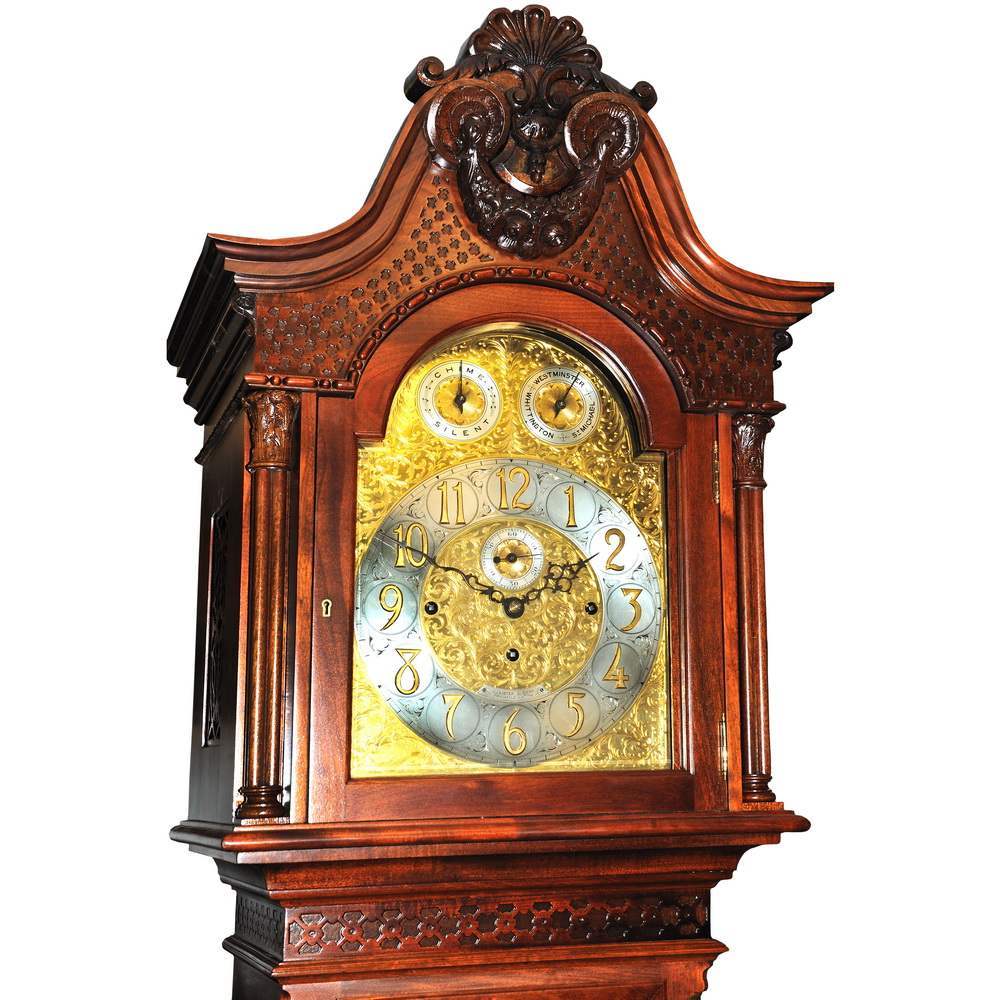 Германия. Начало XX века. Красное дерево, бронза, латунь, золочение, серебрение. Четвертной бой, функция отключения боя, 2 мелодии. Высота - 245,0 см.