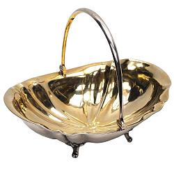 Красивая старинная сухарница, выполненная из «царского» серебра в последней четверти XIX века. Такой способ декорирования принято называть «дольчатым», из-за характерного разделения на своеобразные дольки. Подобное решение может вызвать разные ассоциации, например, плоды цитрусовых деревьев, что также подкрепляется красивой, глубокой позолотой. Но все же, наиболее точным сравнением является именно морская раковина. Перламутровый блеск серебряной поверхности и причудливые изгибы сухарницы напоминают удивительное чудо природы – дом моллюска, раковину. Использование морской тематики, раковин и наутилусов характерно для стиля Барокко, а в данном случае для историзма, заимствующего барочную эстетику. Предмет обладает коллекционным и музейным значением. Хорошая сохранность. Антиквариат.
