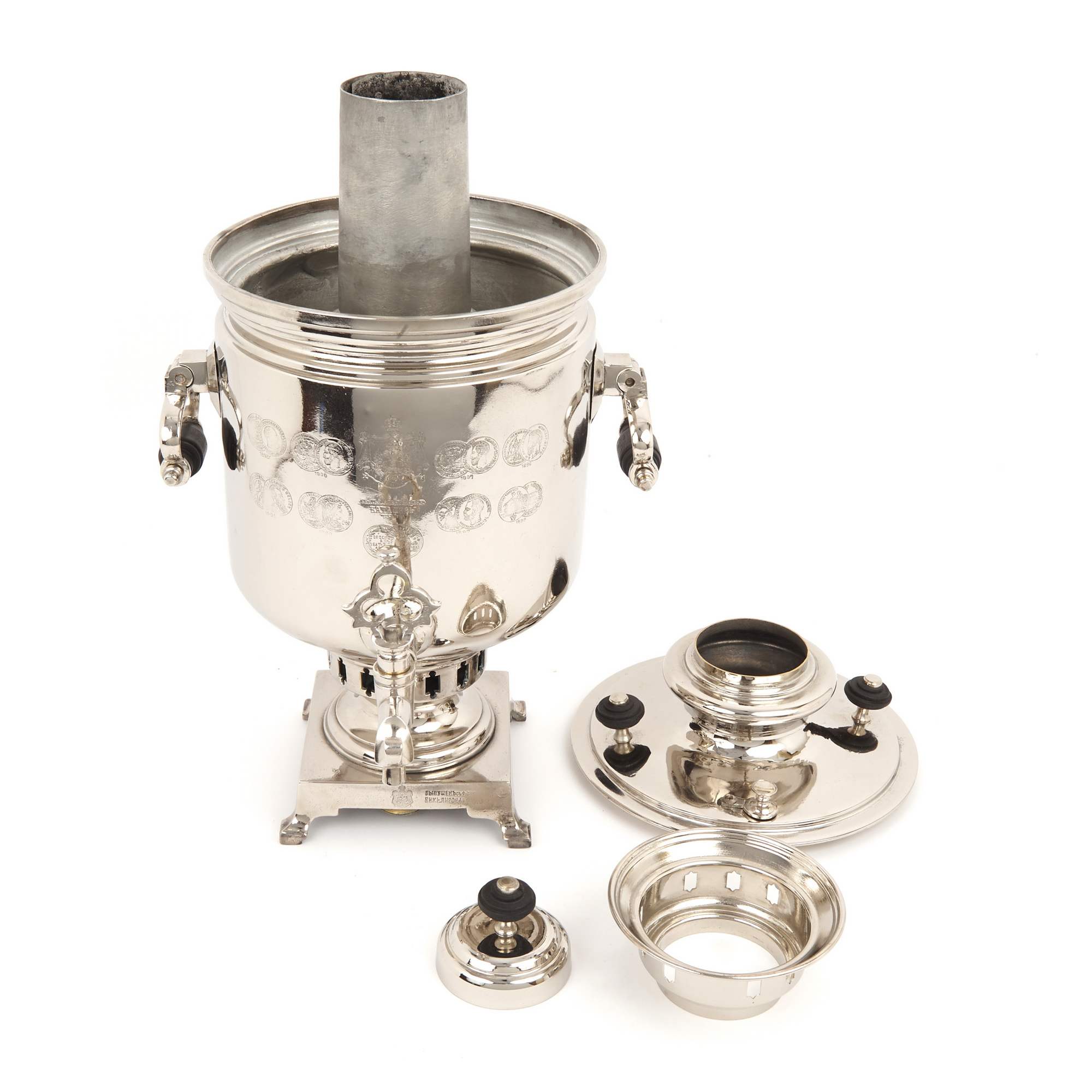Самовар – это не просто практичный и красивый сосуд для горячей воды, это настоящий символ тепла, уюта семейной домашней атмосферы. Это предмет, превращающий чаепитие в ритуал, наполненный ароматным теплым воздухом и задушевными разговорами. Фабрика Баташевых одна из самых известных производителей самоваров в Российской Империи и СССР. Новое качественное лужение. Никелирование. Хорошая сохранность. Профессиональная реставрация. Полный комплект. Антиквариат.