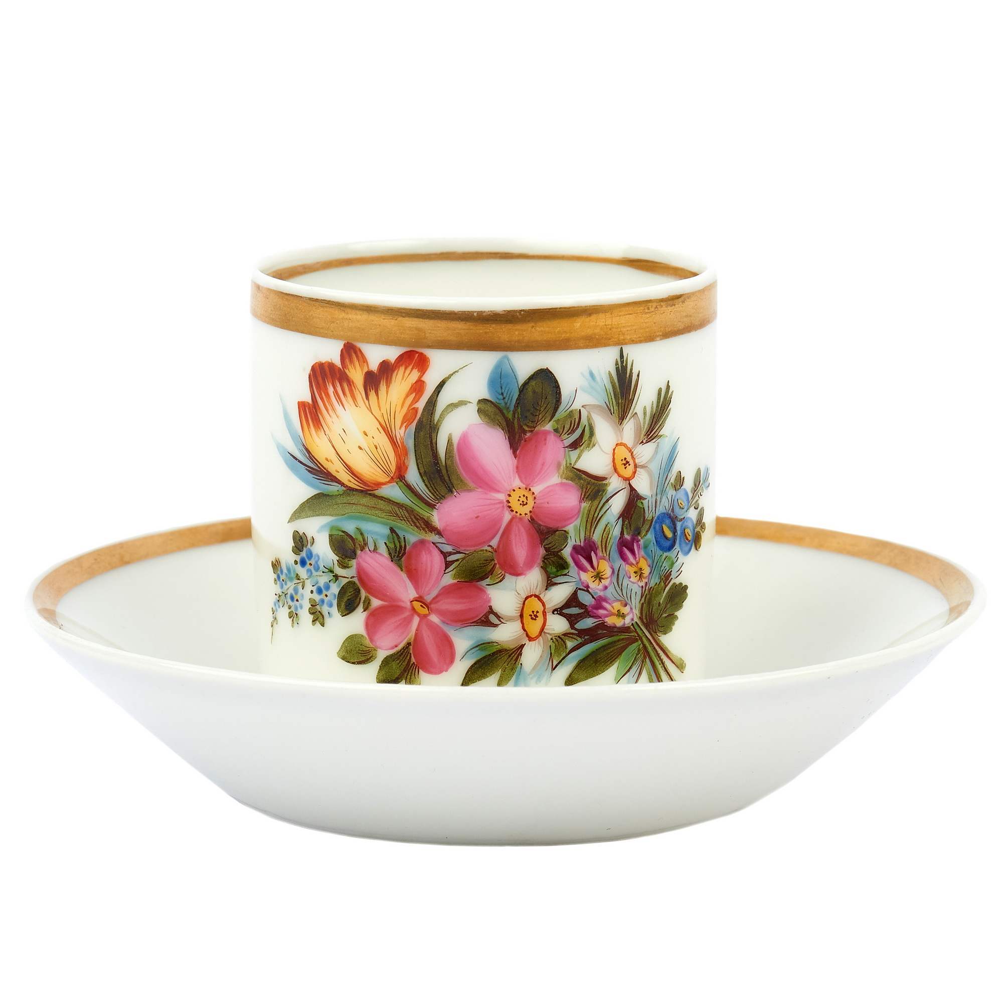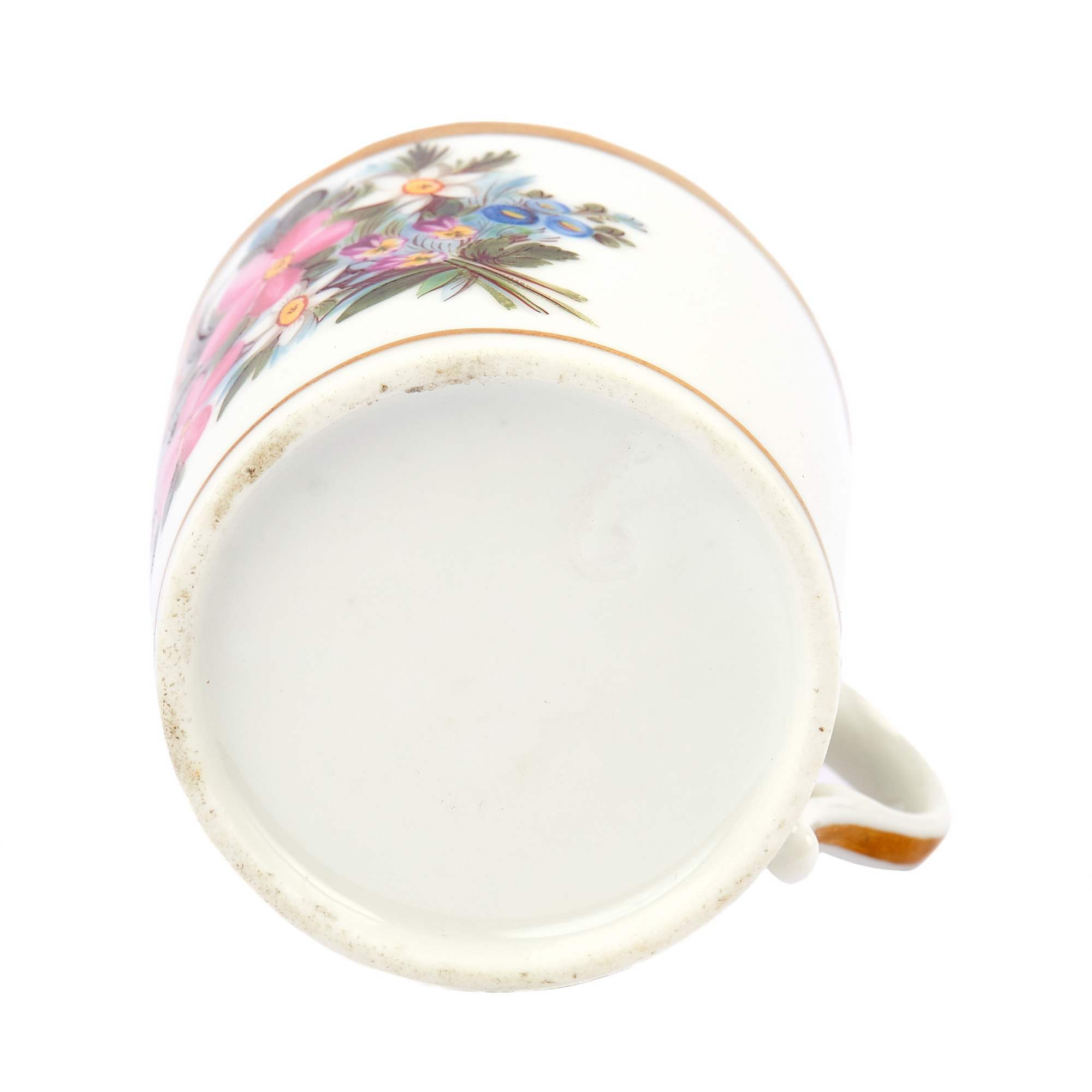 По качеству росписи, по форме чашки можно утверждать, что данное изделие вполне вероятно было изготовлено в середине 19-го века на одном из частных заводов царской России. Больше всего по росписи и форме подходит фабрика Попова.