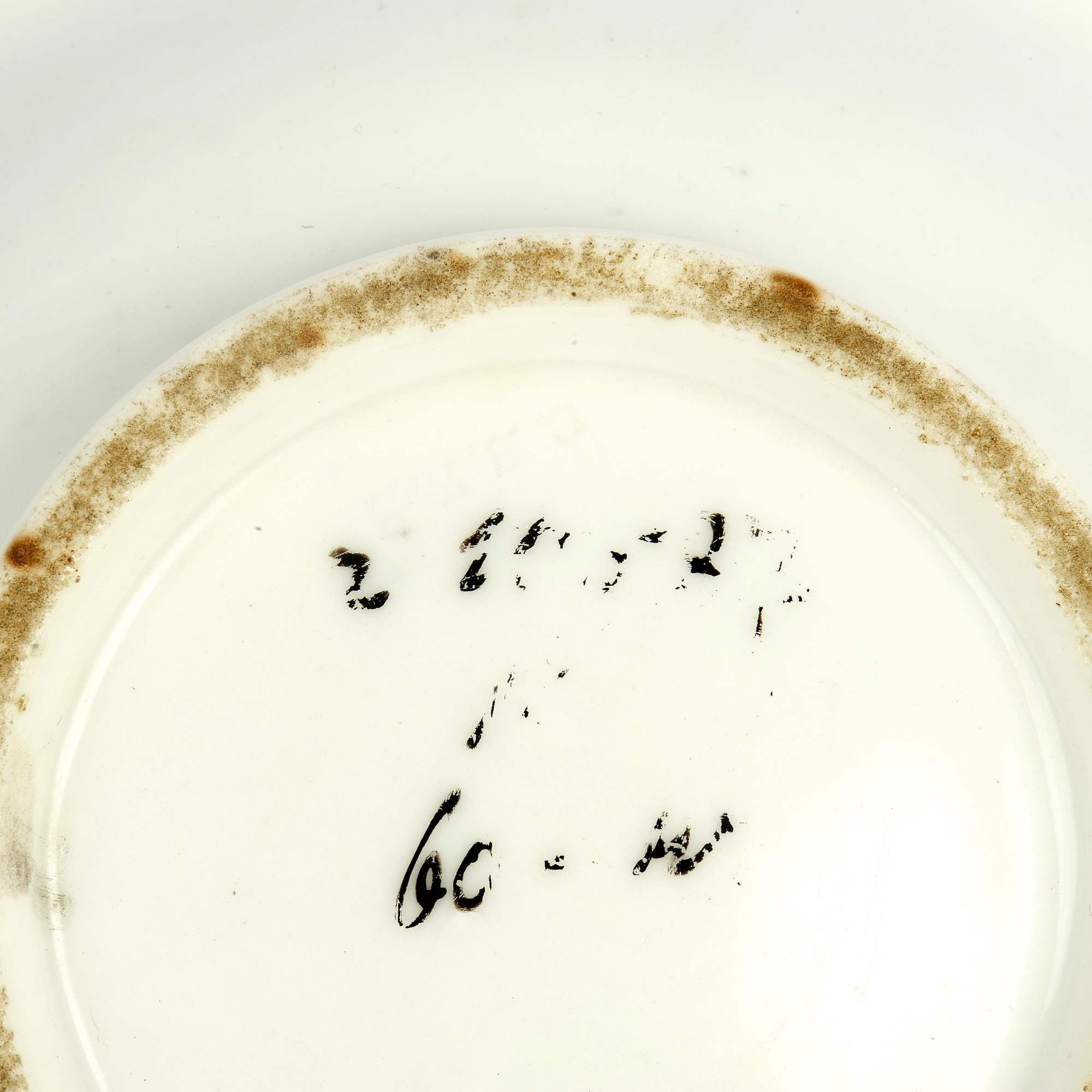 С.З.К.Б ( Санкт-петербургский Завод Купца Батенина ). Наличие марок на предметах является большой удачей, тем более такого хорошего качества. Фарфор фабрики Батенина всегда отличался хорошим качеством и вкусом. Подобные чашки и части сервизов присутствуют в крупнейших музеях страны: ГМЗ «Петергоф», Государственный Русский музей, Елагиноостровский дворец-музей. Антиквариат. Хорошая сохранность. Без реставрации. Присутствуют следы бытования, незначительные потертости золочения. Редкость. Музейное значение.