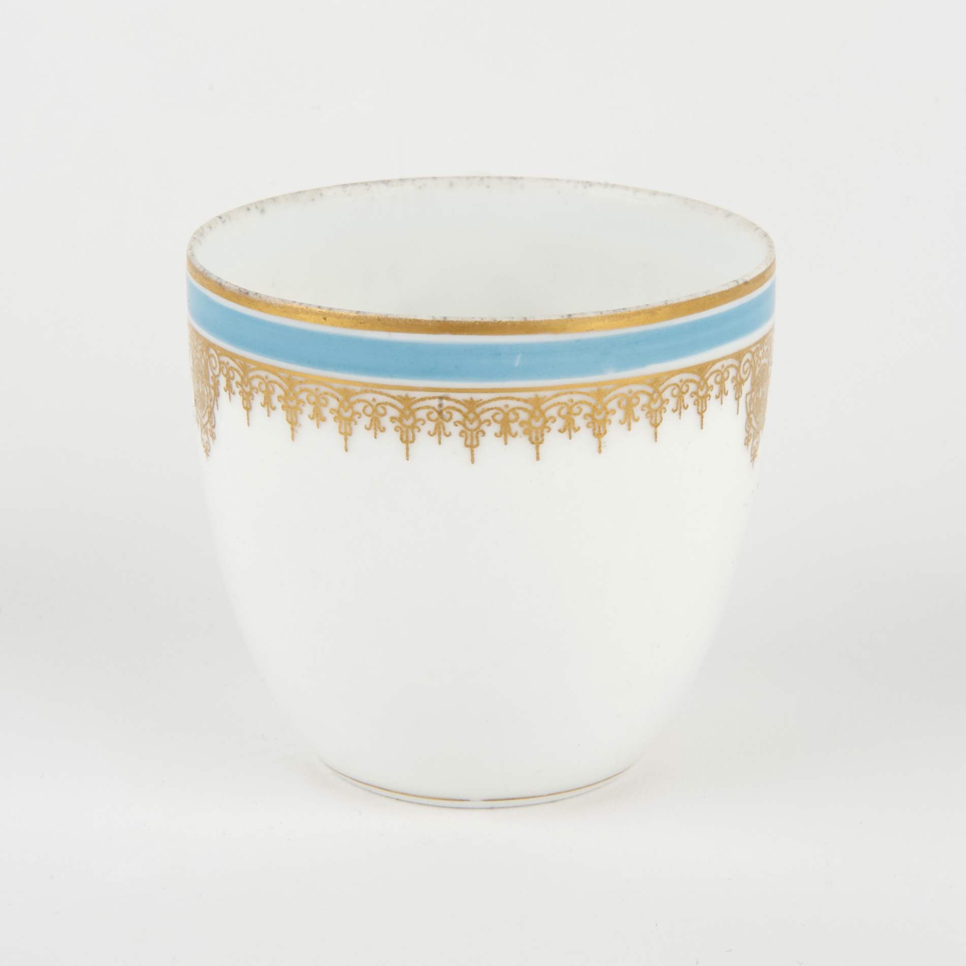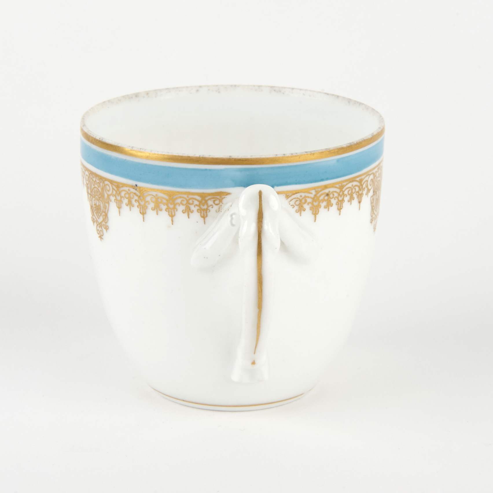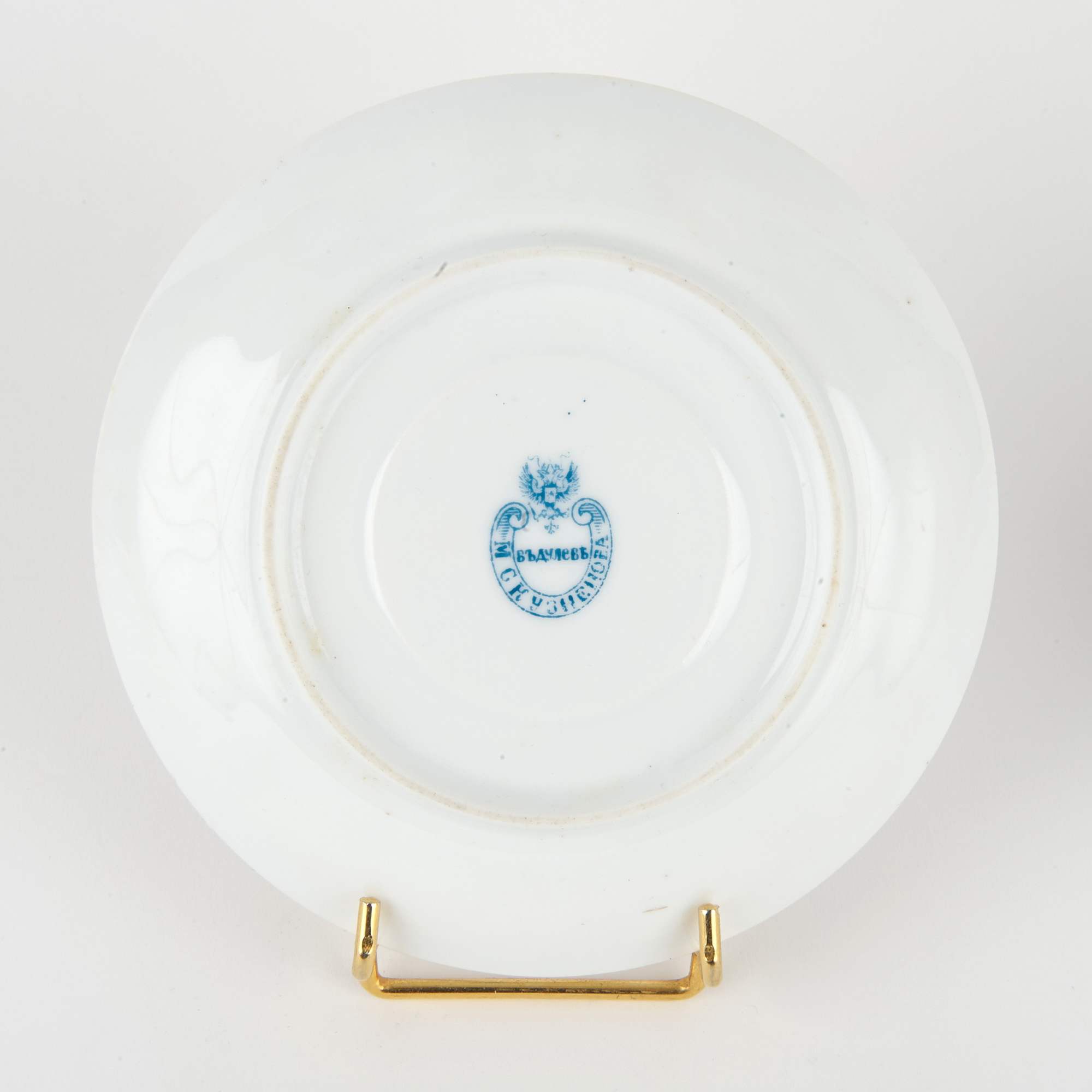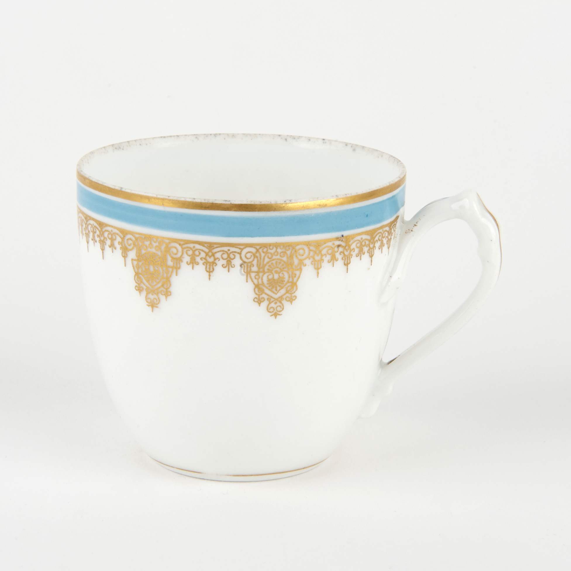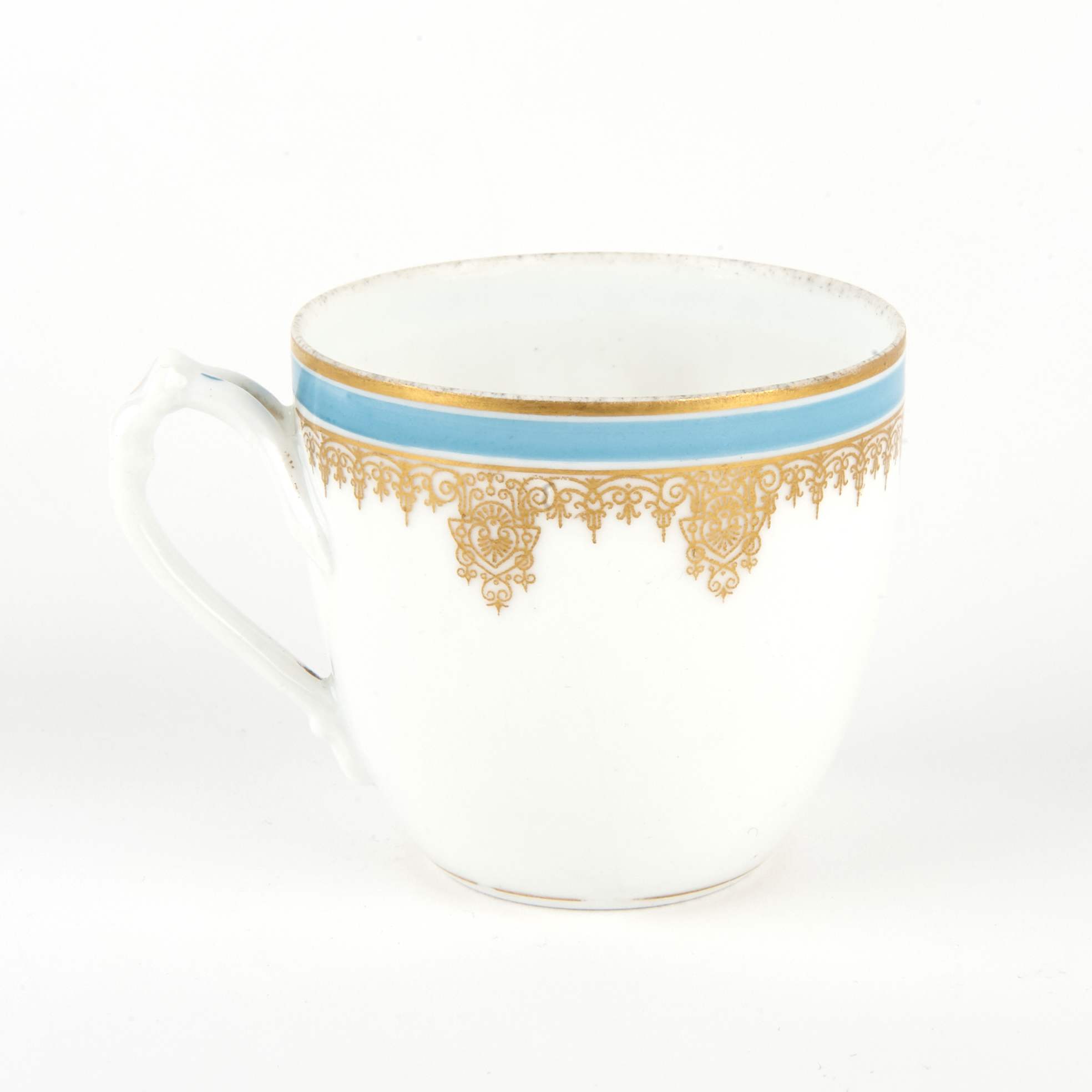 Россия. Дулёво. Завод Кузнецова. Фарфор, золочение. Чашка: Высота - 5,9 см, Диаметр - 6,2 см. Блюдце - Диаметр - 12,7 см.