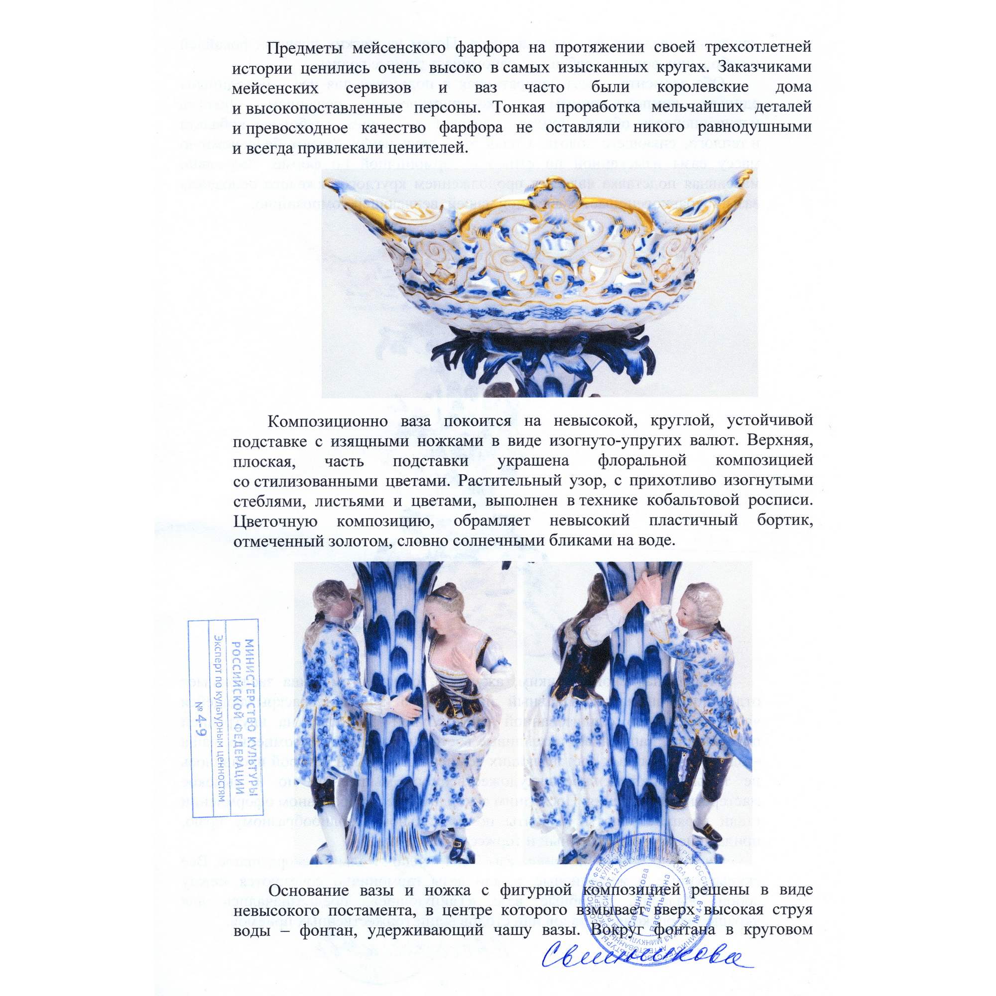 Мейсенская фарфоровая мануфактура. 1860-е гг. Фарфор, роспись, кобальт, золочение. Высота 56 см. Экспертиза МК РФ Свешниковой Г.В.