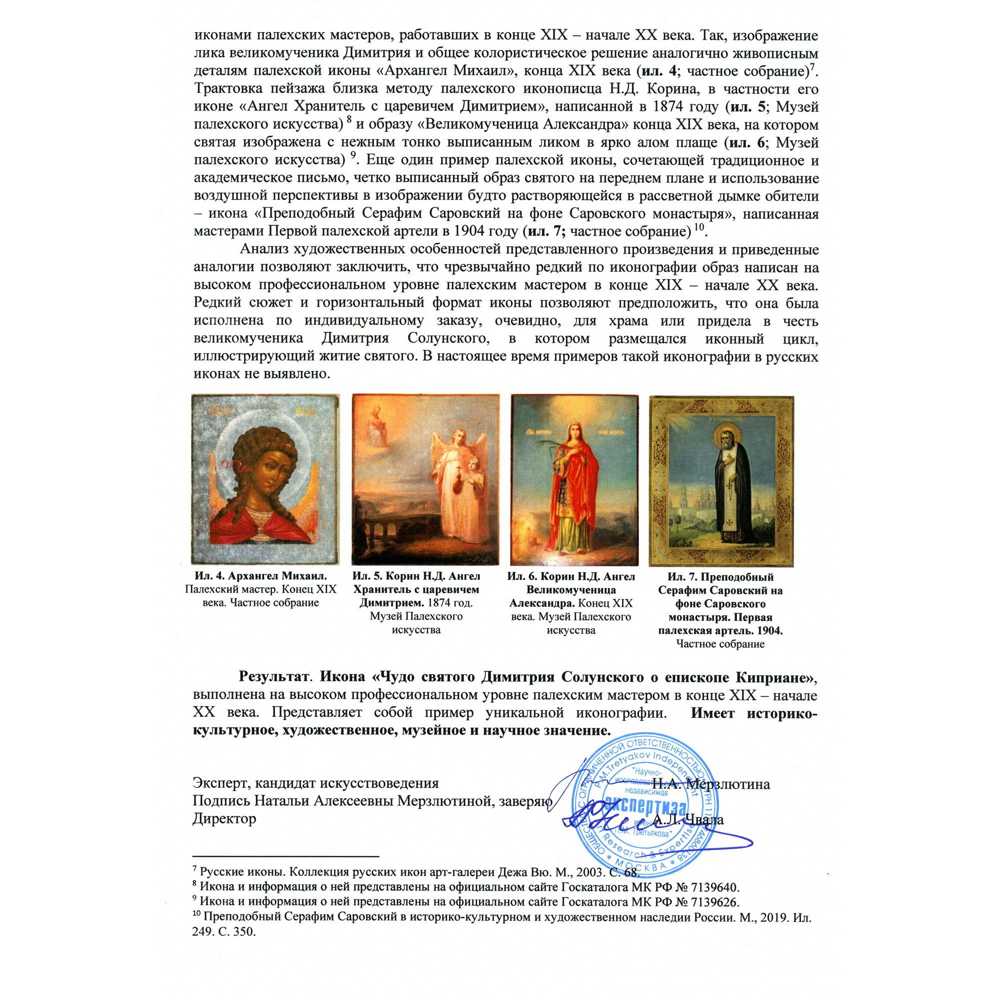 Экспертное заключение НИНЭ им. Третьякова.
