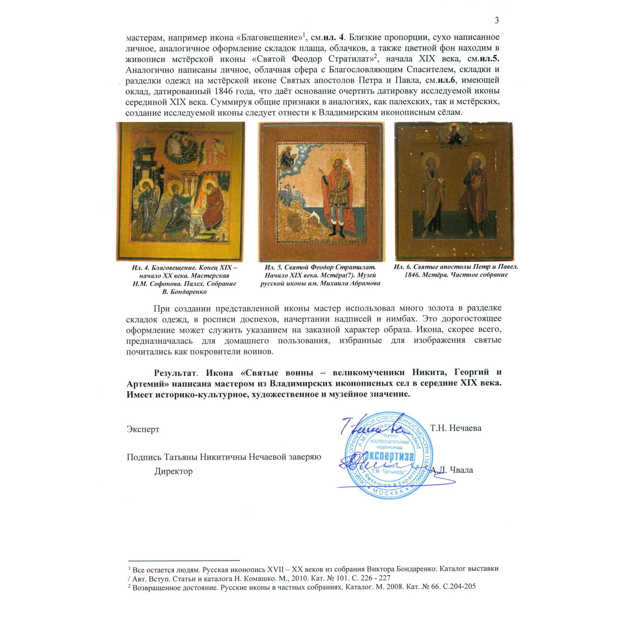 Экспертное заключение НИНЭ им. П.М. Третьякова.