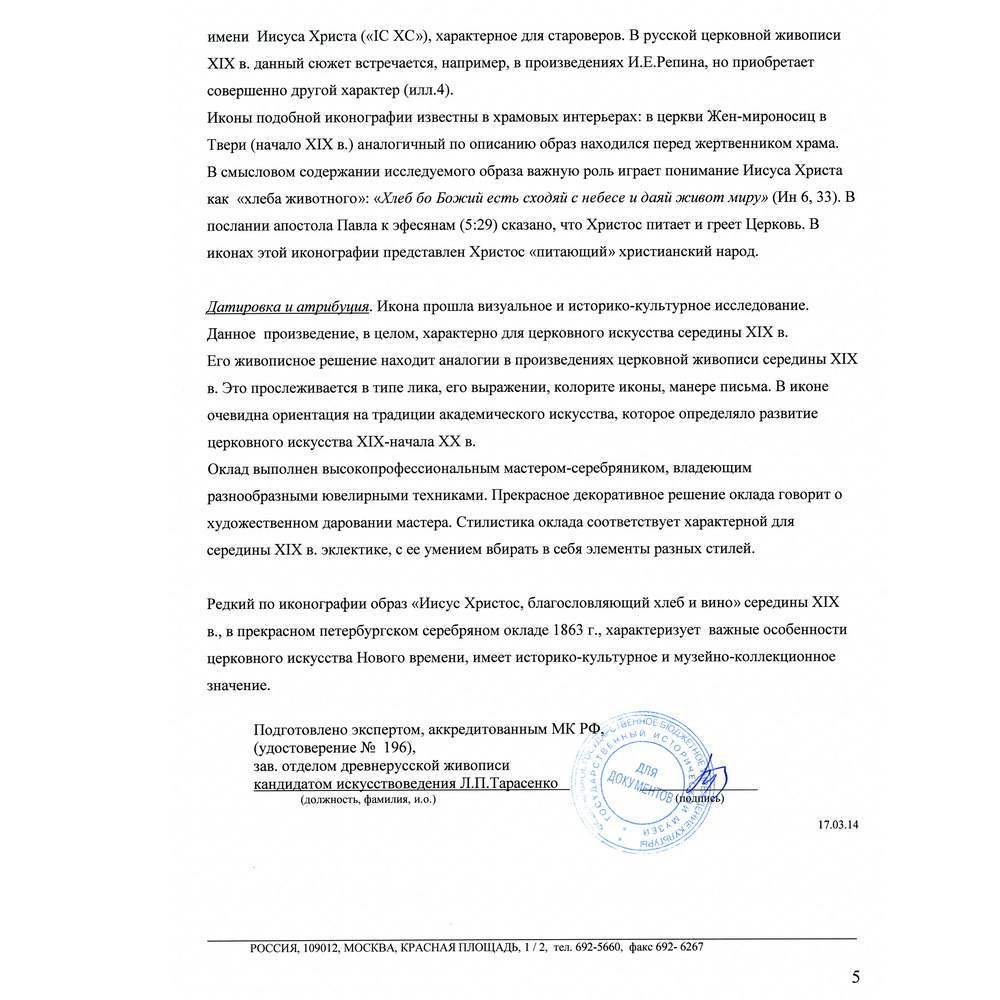 Экспертное заключение зав. отделом древнерусской живописи ГИМ кандидатом искусствоведения Л. П. Тарасенко.