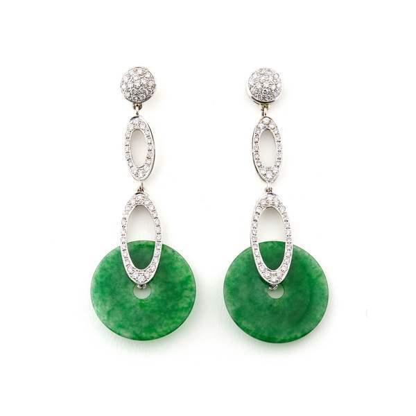 Серьги с бриллиантами и нефритом природным