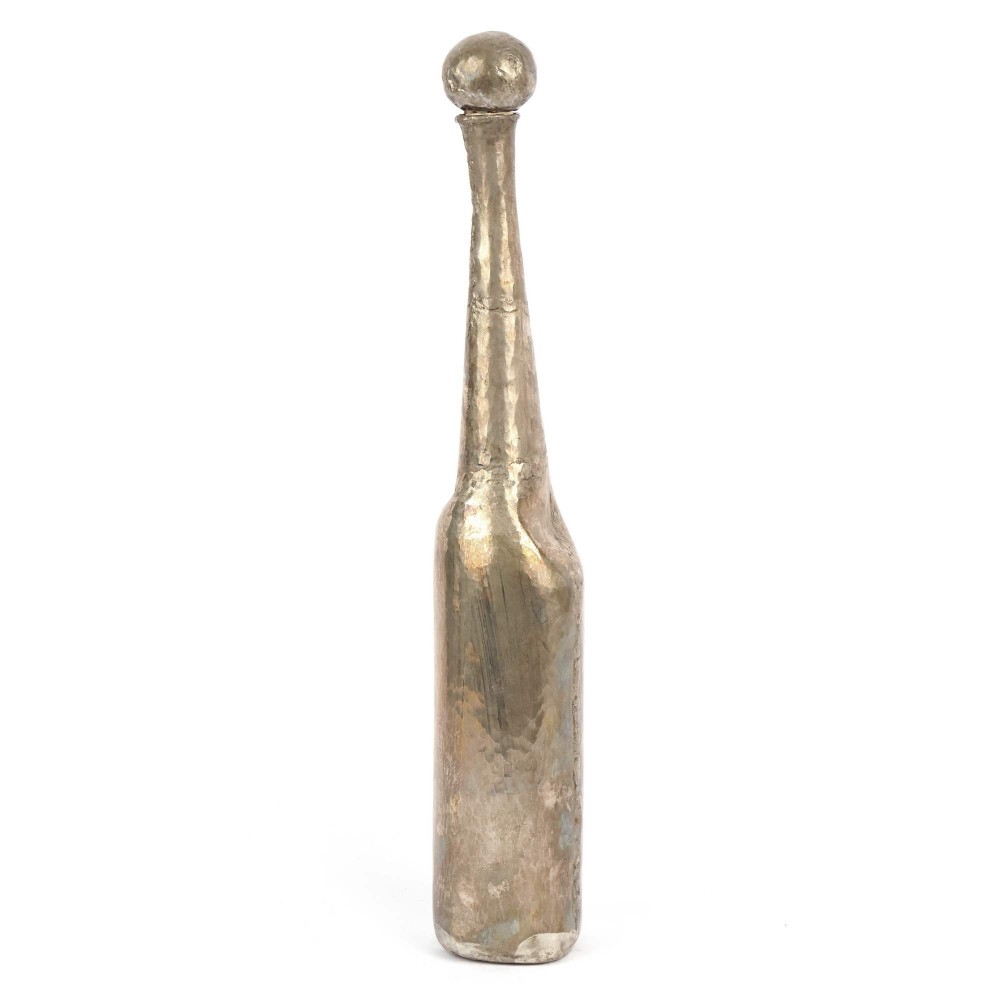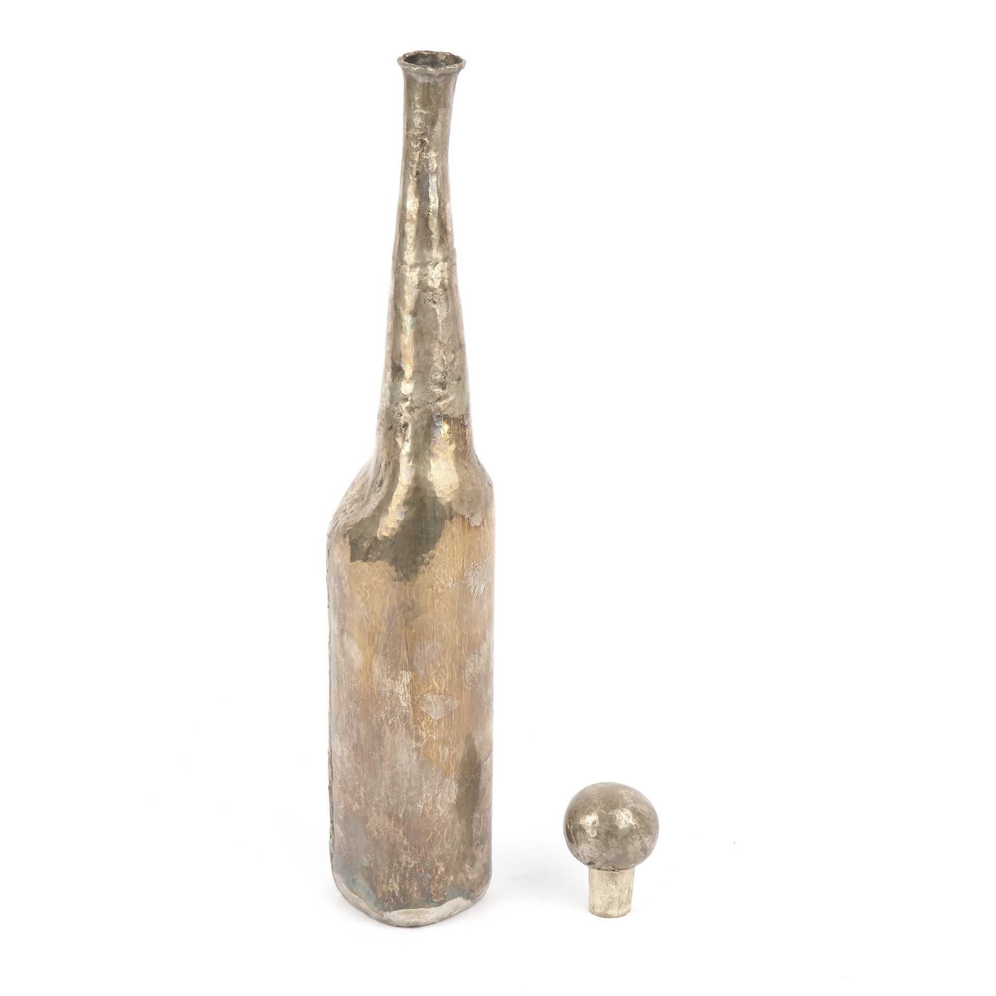 Необычная серебряная бутыль ультра-современного оригинального авторского дизайна. Известный немецкий дизайнер и ювелир. Редкость для отечественного рынка. Сложная техника чеканки, штучная работа с индивидуальным номером и подписью художника.