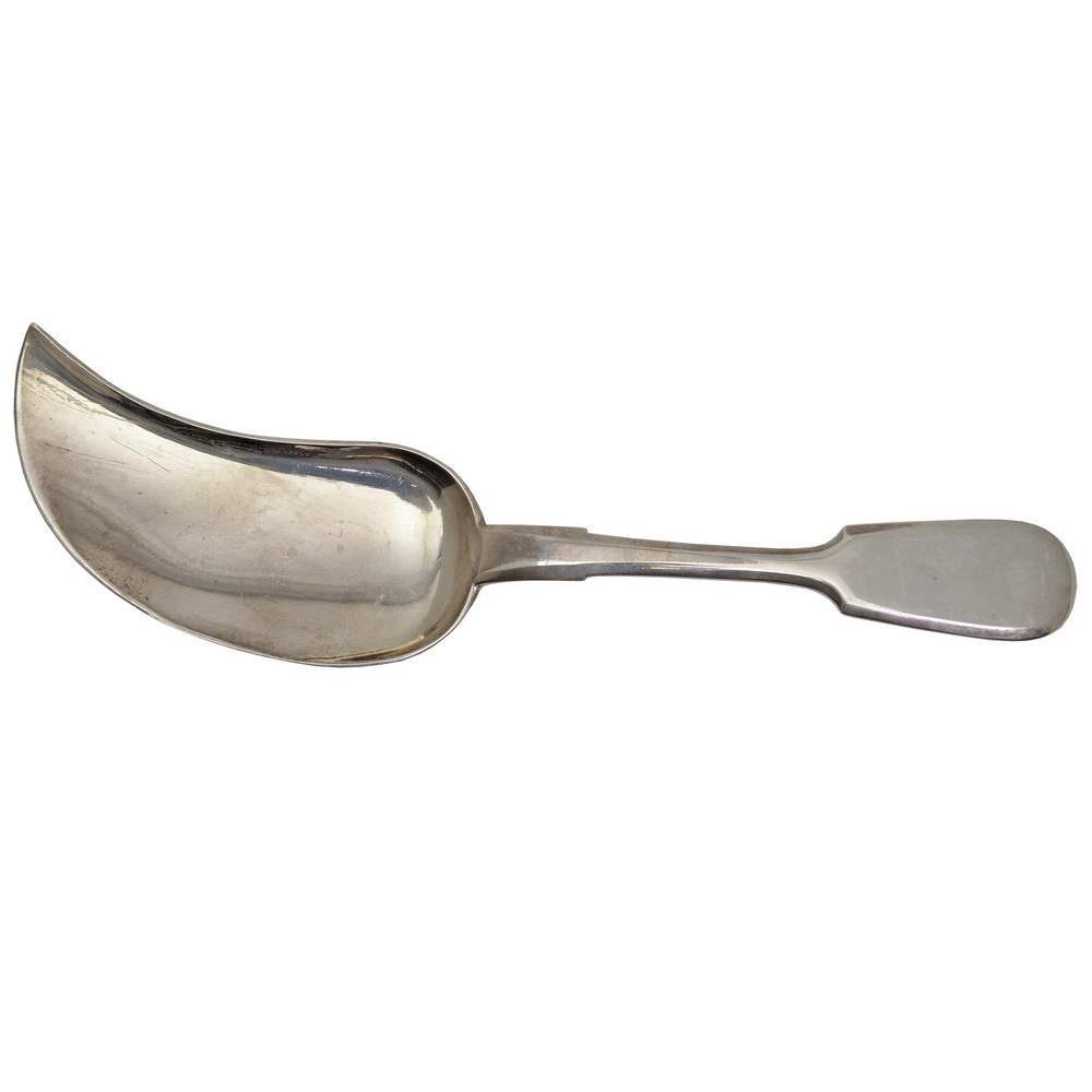 Красивая старинная сервировочная лопатка из «царского» серебра 84 пробы. Необычная форма лопаточки свидетельствует об ее предназначении - для сервировки десертов, преимущественно тортов и сыпучих сладостей. Предмет сочетает в себе исключительную практичность и красоту, что делает его примечательным и редким. Хорошая сохранность, антиквариат.