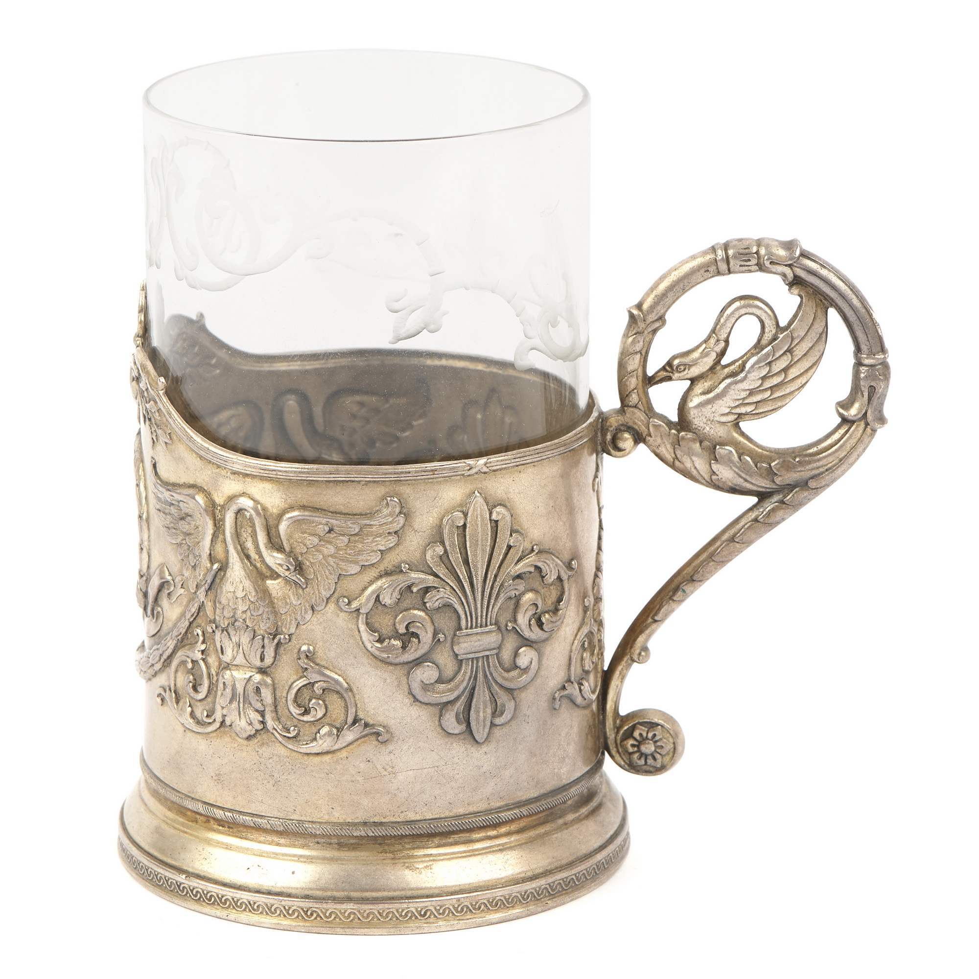 Старинный подстаканник с характерным орнаментом «лебеди». Красивые благородные птицы стали одним из любимых мотивов СССР, часто встречающимся в декоре, в том числе подстаканников. Лебедь символизирует чистоту, благородство, ассоциируется с женской красотой. Хорошая сохранность. Антиквариат.