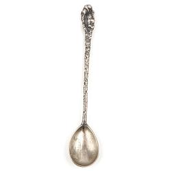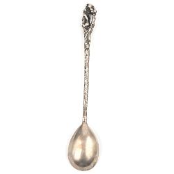 Красивая старинная чайная ложка с изображением двух мишек, играющих на разветвленном дереве. Мастер блестяще воссоздает фактуру дерева, по которому лазают медвежата, искусно создавая декоративный и даже смешной образ. Следует сказать, что не смотря на фигурку медведя ложка исключительно удобна в использовании. Отличная сохранность, антиквариат.