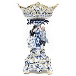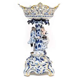 Фарфор, лепка, надглазурная полихромная роспись, золочение.